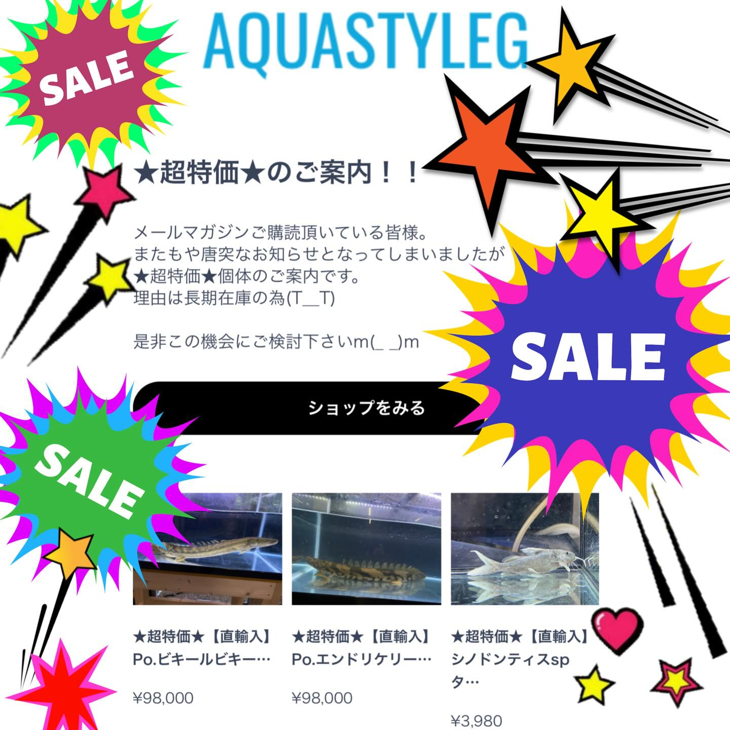 ★超特価★SALEのご案内です。 BASE&ヤフオクにて一部 ★超特価★SALEのご案内です。 シノドンティスsp.タンザニア aquastyleg.base.shop/items/94325141 Po.エンドリケリーマリ産60cm aquastyleg.base.shop/items/95889641 Po.ビキー…